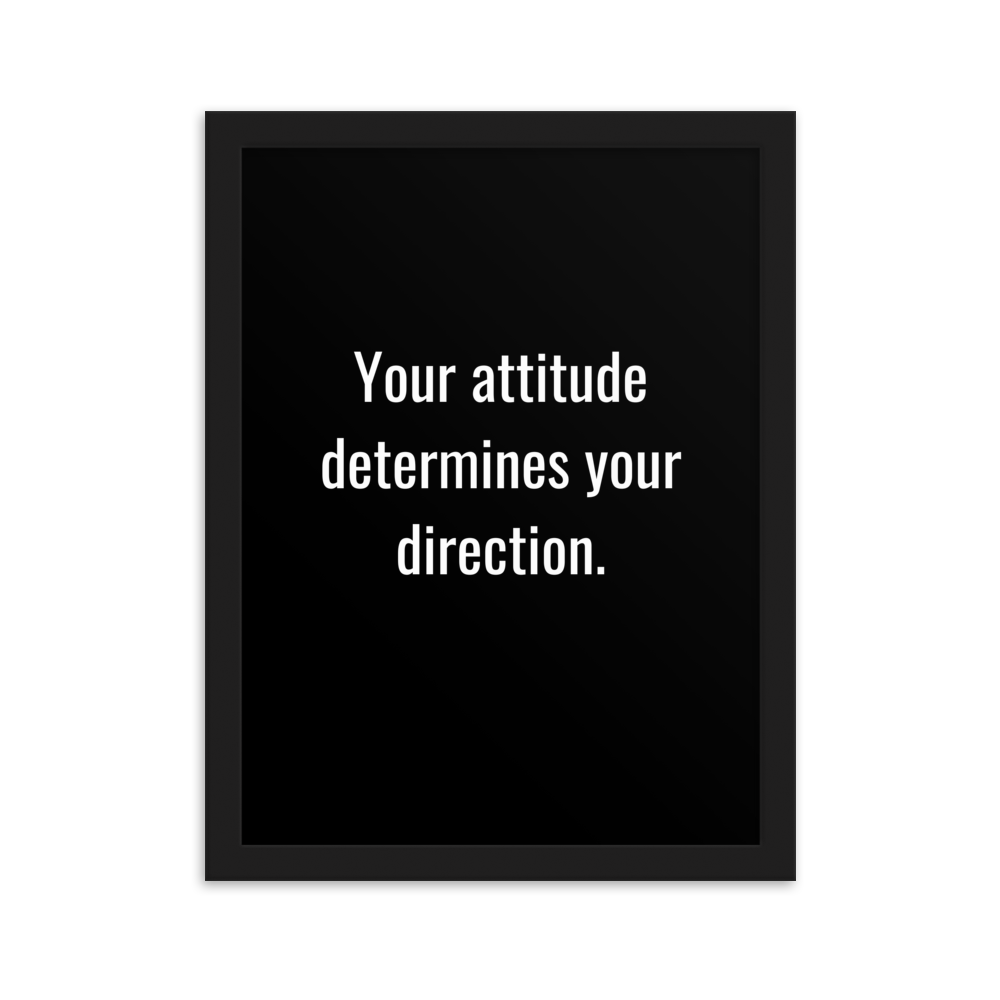 Elevate your mindset and chart the course to success with our compelling "Your Attitude Determines Your Destination" framed matte paper poster. This impactful quote serves as a compass, guiding you to recognize the profound influence your attitude has on shaping the path to your desired destination. Here's why this motivational poster is an invaluable addition to your space: