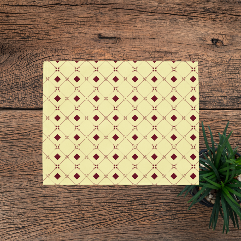 Ready to infuse a personal touch into your dining space? The customizable front allows you to showcase your individual style, transforming your dining table into a vibrant gallery of creativity. The geometric design in cream and maroon adds a touch of modern elegance, creating a versatile look suitable for various occasions.
