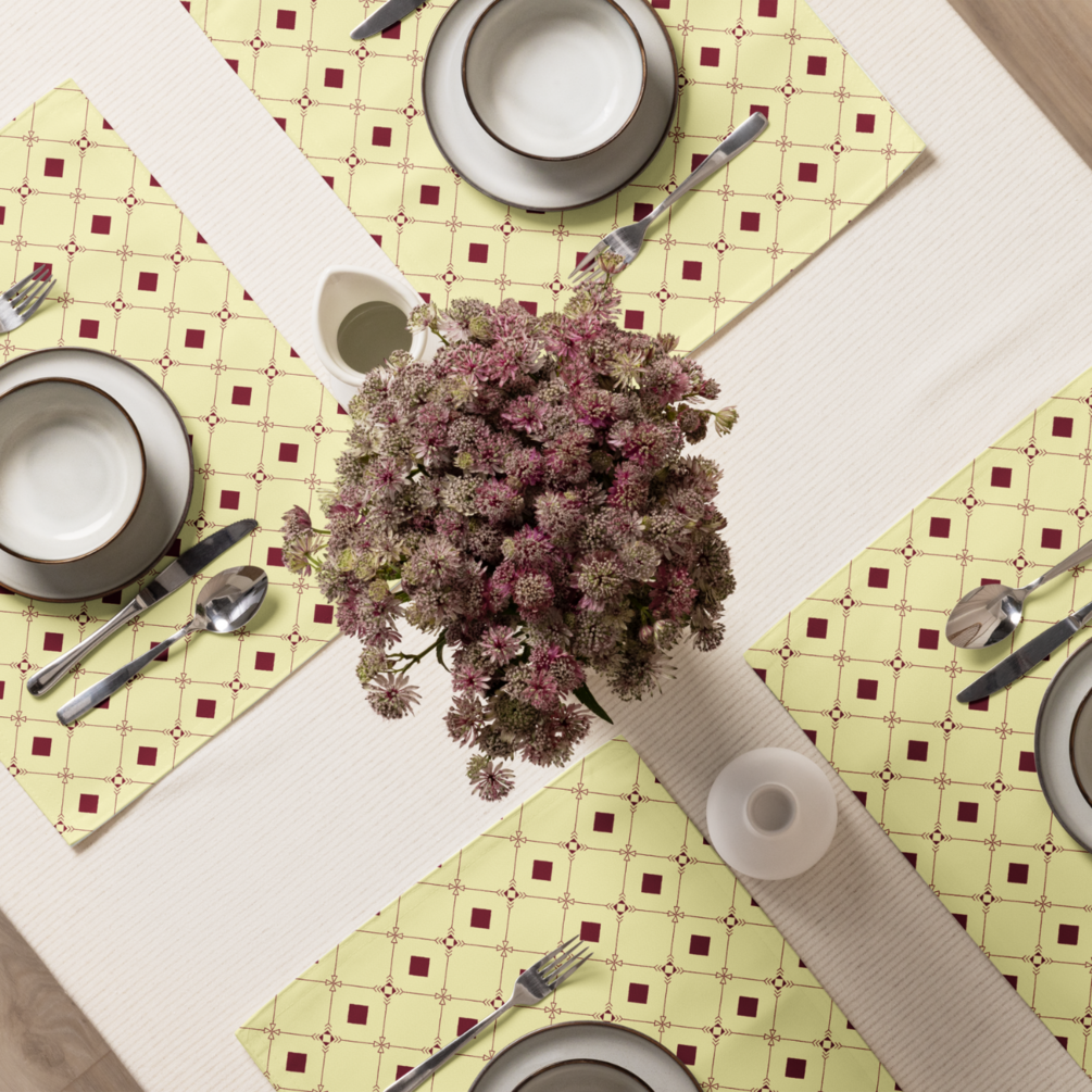 Ready to dine in style? Elevate your table setting with our Cream and Maroon Mixed Geometric Design Placemat Set—a must-have for those who appreciate the perfect synthesis of style and functionality.