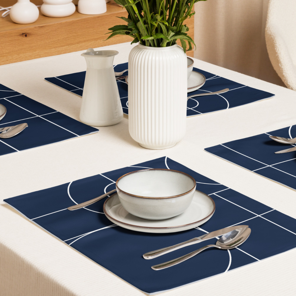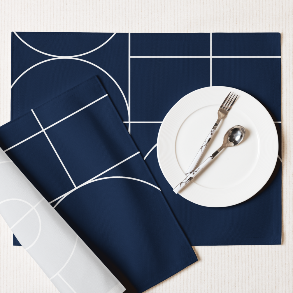 Are you ready to make a statement at your dining table? The customizable front allows you to add a personal touch, transforming your dining space into a vibrant gallery of creativity. With a captivating blue and white mixed geometric design, these placemats effortlessly bring a touch of modern elegance to any occasion.