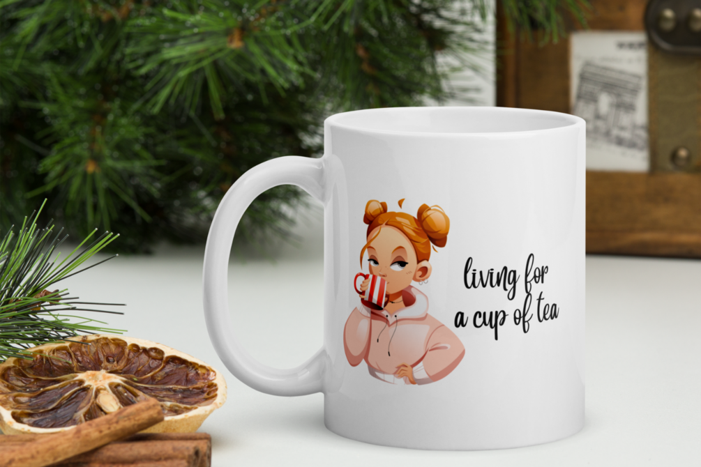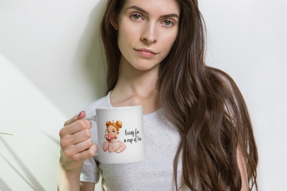 2. Vivid Prints, Lasting Quality: The glossy white surface of the mug serves as a canvas for our delightful "Living for a Cup of Tea" quote, accompanied by a charming cartoon illustration of a girl savoring her tea. The vivid prints add a touch of personality to your mug, and the high-quality printing ensures that the design remains vibrant even after countless rounds in the dishwasher or microwave.